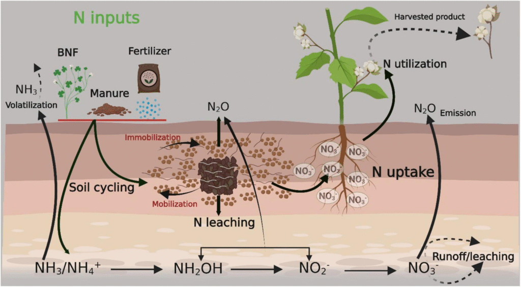 Plants easily absorb nitrate, which is supplied by nitrates such as potassium and sodium nitrate. Nitrate fertilizers do not acidify soil like ammonium-based fertilizers do, but because of their mobility in soil water, they are more likely to leach. For safe use, proper soil management and application are essential.